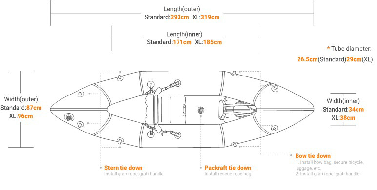 Waterline: 275 cm / XL: 297 cm