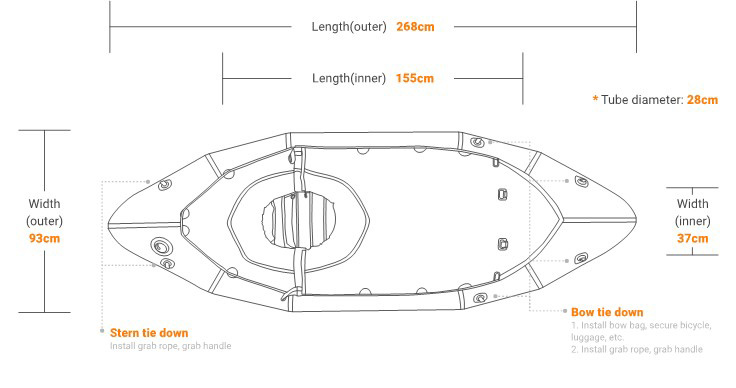 - Sitz: 70-Denier Gewebenylon mit 0,1 mm einseitiger PU-Beschichtung, verwitterungs- und hydrolysebeständig